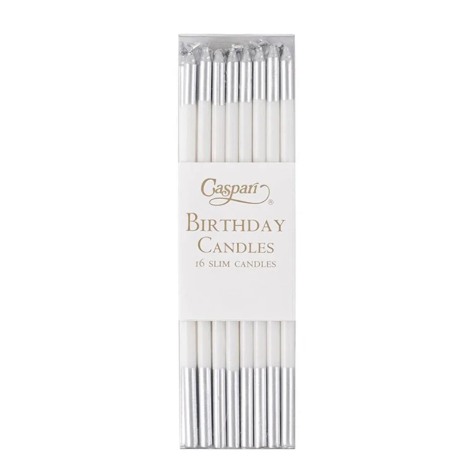 Slim Birthday Candles in White & Silver – 16 Candles Per Package