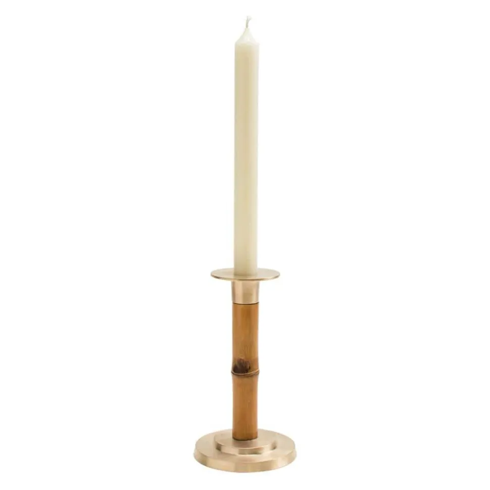 An ideal style between casual and elegant, our bamboo and brass candlesticks are designed to elevate tablescapes and home décor alike during any season. The warm wood and brass tones give them a versatile neutrality perfect for pairing with any color in our tapered candle collection.
