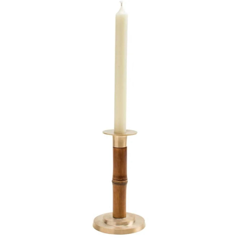 An ideal style between casual and elegant, our bamboo and brass candlesticks are designed to elevate tablescapes and home décor alike during any season. The warm wood and brass tones give them a versatile neutrality perfect for pairing with any color in our tapered candle collection.