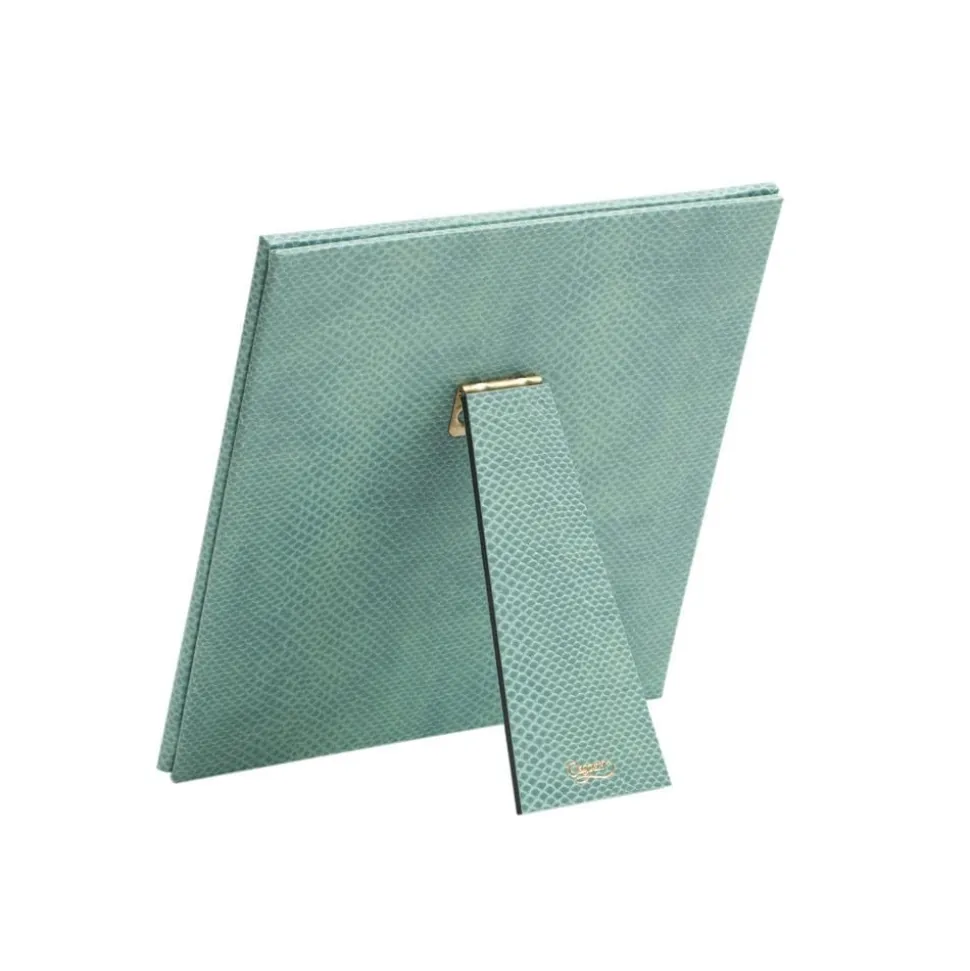 As a part of our Gallery Collection, these beautiful picture frames are handmade in our Connecticut bindery. Here, items are crafted with the same skills used in centuries past to create beautiful handmade objects. Our frames feature designs and faux leather finishes that perfectly coordinate with other pieces from our Gallery and office collections. Display them in your own home or fill them with fond memories to give as thoughtful gifts for any occasion. This frame holds a 4×4 square picture.