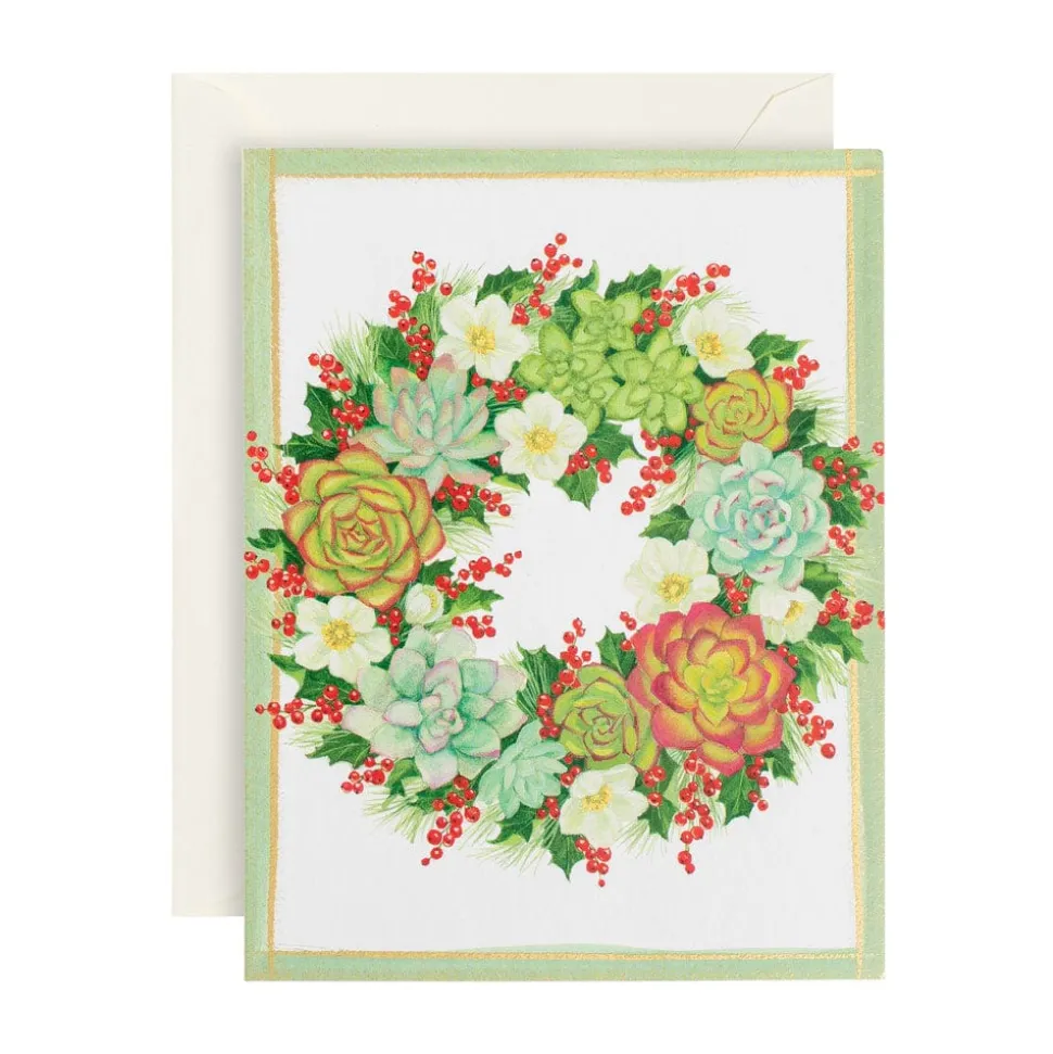 Succulent Wreath Classic Boxed Christmas Cards - includes 15 cards & envelopes