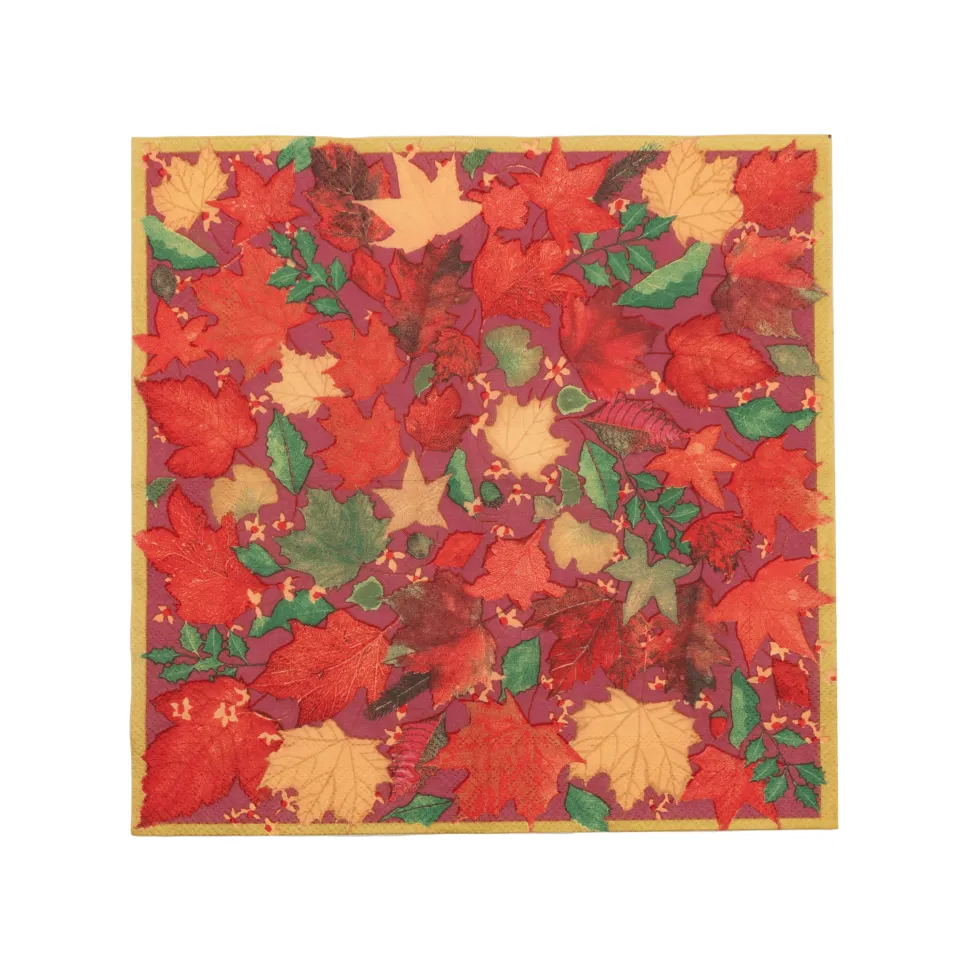 Swirling Leaves Burgundy Cocktail Napkins - includes 20 Cocktail Napkins