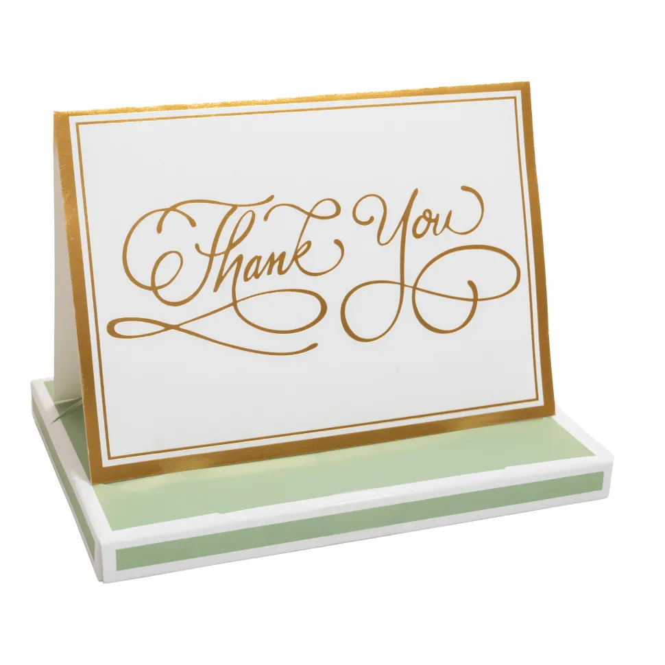 Caspari thank you notes are a perfect staple for your stationery collection. Recipients of your thanks will be greeted by stunning licensed artwork from artist and museums around the world. Our cards are printed in on high-quality cardstock by a respected printing facility in Switzerland, one of the only printers in the world with the ability to gold bronze. The front of our cards offer thanks and inside, the notes are blank, leaving you with room to write any sentiment of thankfulness.
