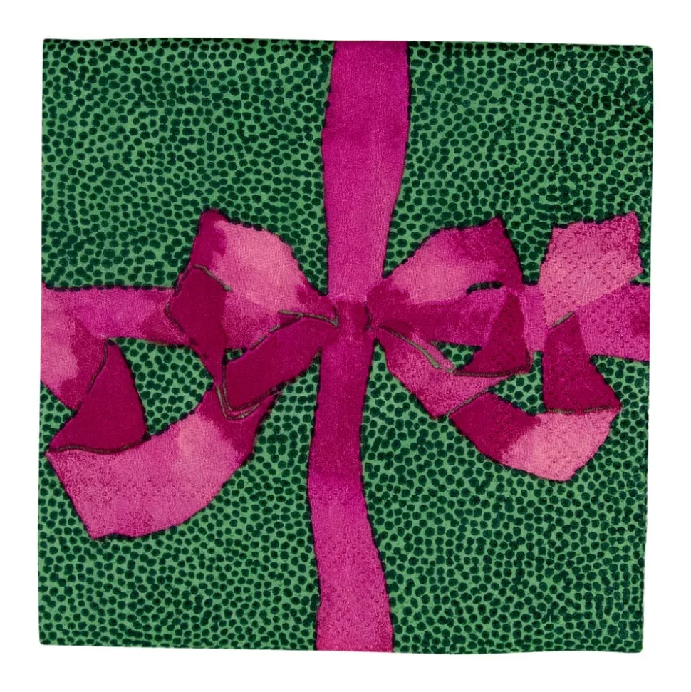 Tied With A Bow Green & Plum Cocktail Napkins - 20 Per Package