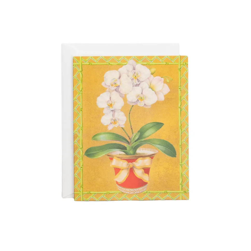 White Orchid In Red Pot Petite Boxed Christmas Cards - includes 15 cards & envelopes