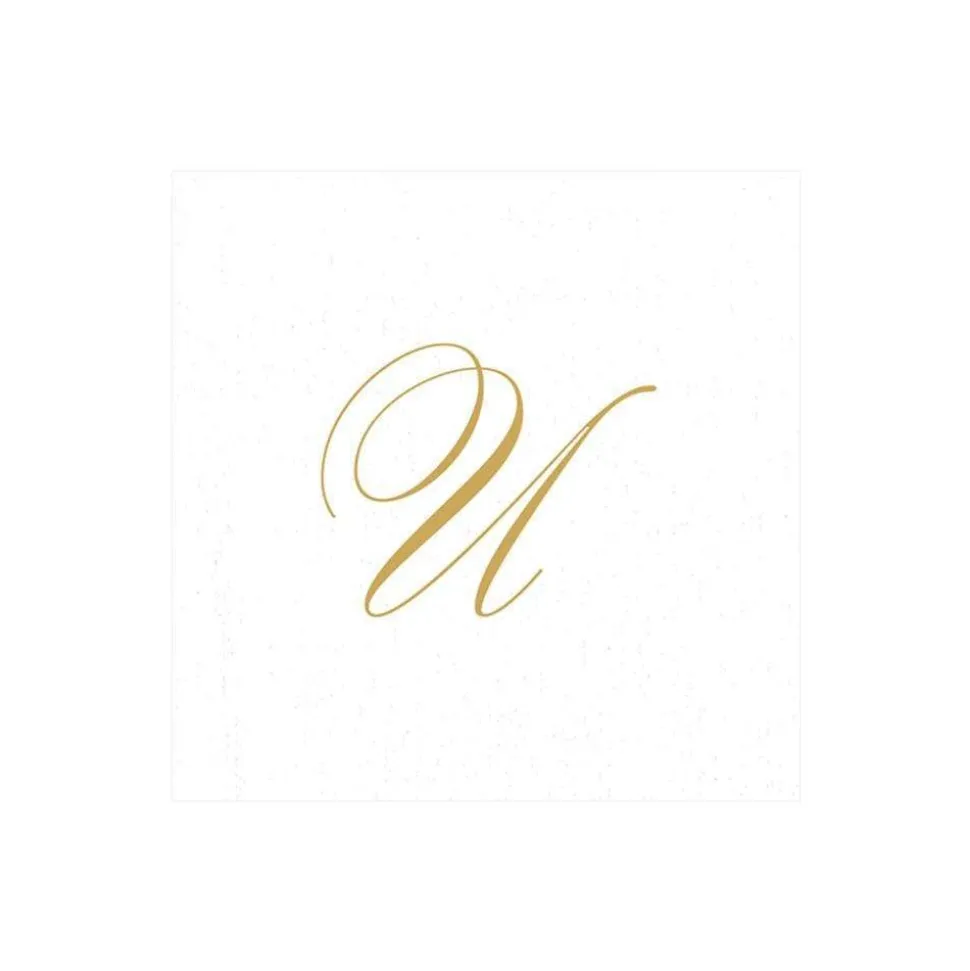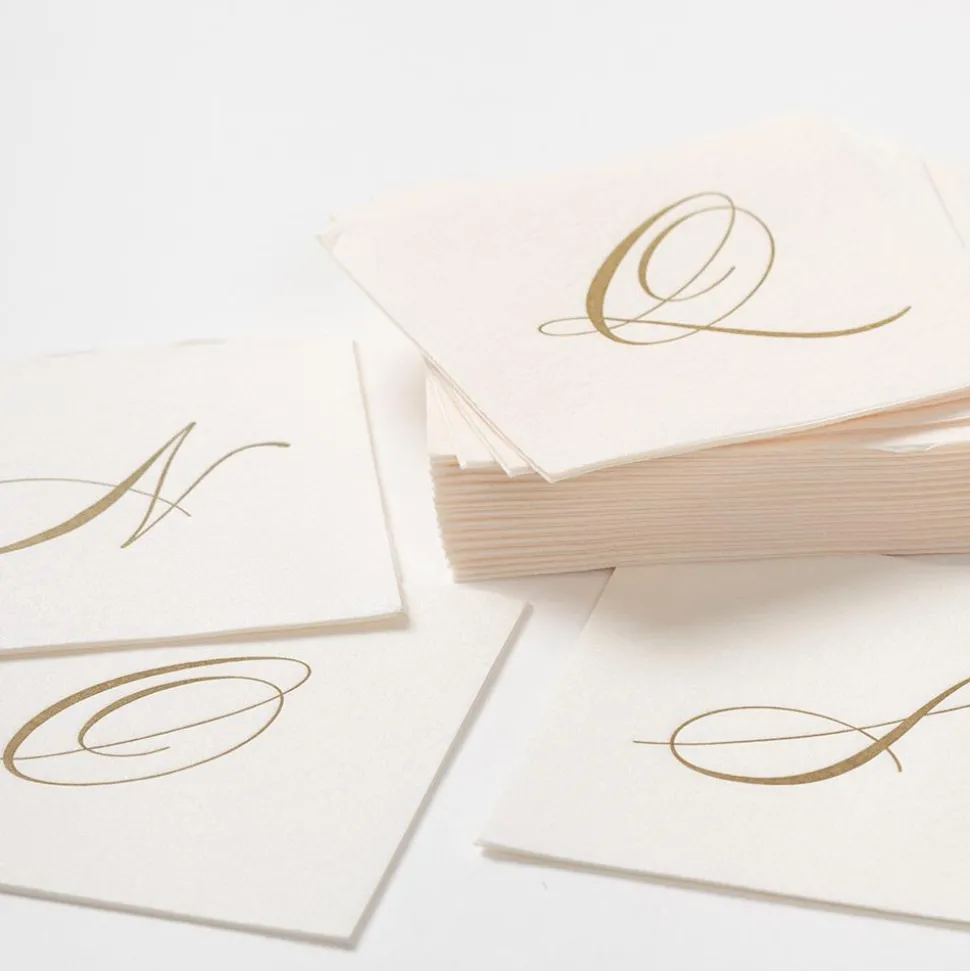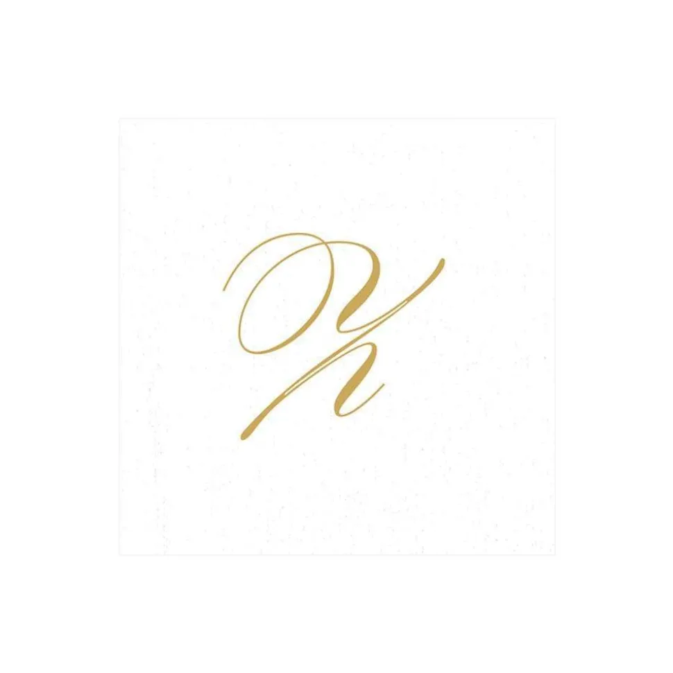 Caspari boxed cocktail napkins make an excellent and useful gift item. Our Paper Linen material offers the look of linen, the feel of cloth, and the convenience of paper. Paper linen napkins are extra absorbent and durable, making them ideal for entertaining and everyday use. They are made of ultra-durable, linen-like airlaid paper and printed in Germany with nontoxic, water-based, food-safe ink. These napkins are made using environmentally-conscious raw materials, which ensures that they are both biodegradable and compostable. Our vibrant color options and beautiful designs elevate any occasion while your chosen initial adds a personalized touch. 30 napkins per gilded gift box with acetate lid.