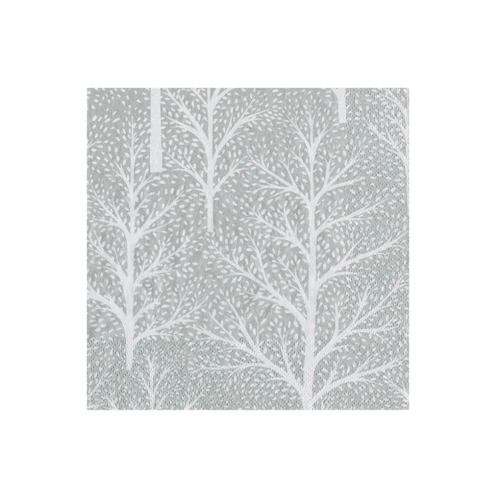 Winter Trees Silver & White Boxed Cocktail Napkins - 40 Per Box