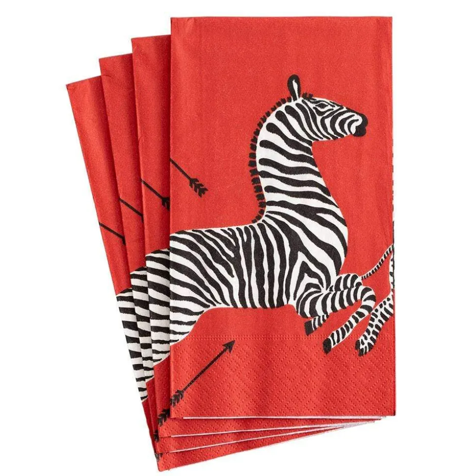 Zebras Paper Guest Towel Napkins in Red - 15 Per Package